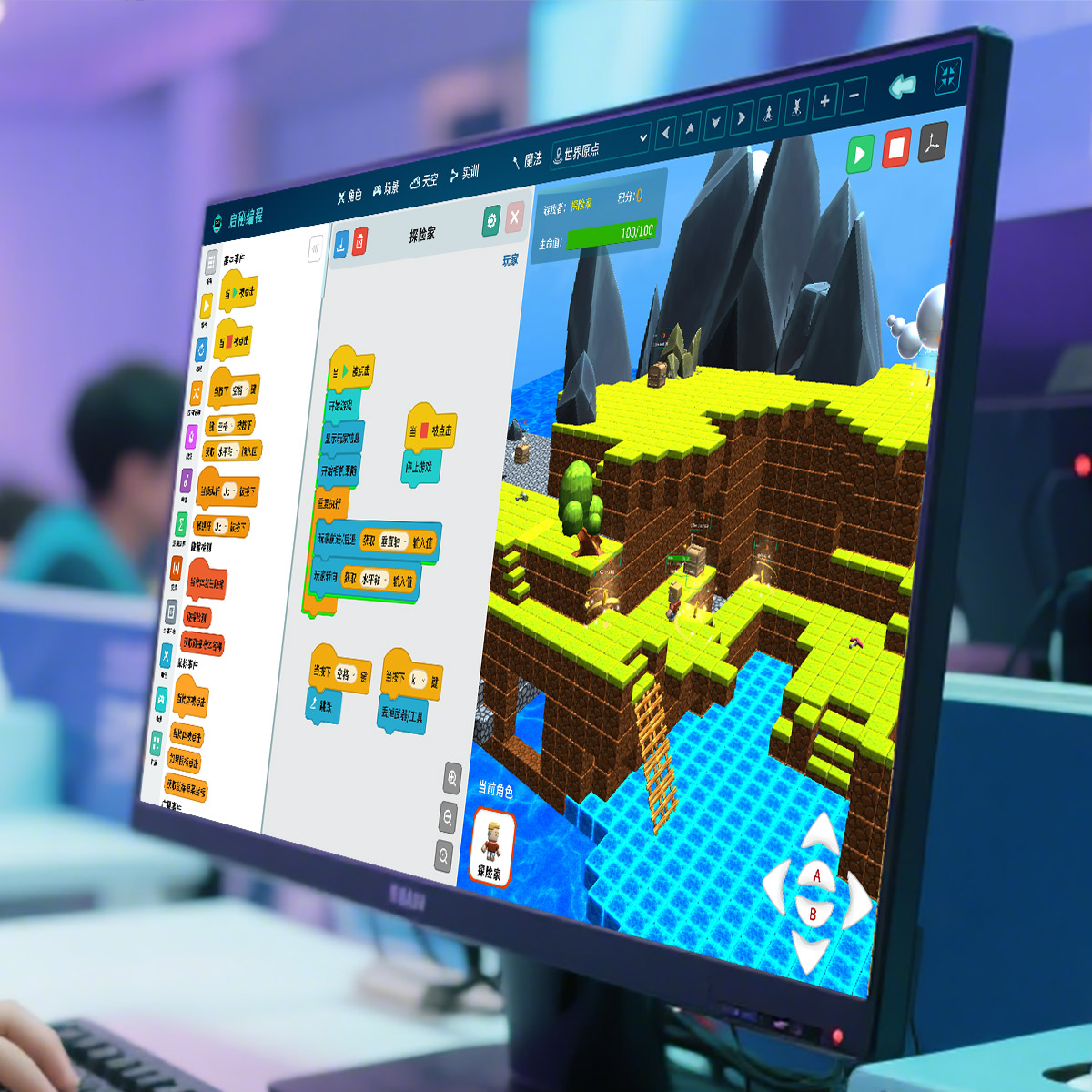 使用图形化的代码块来代替传统编程语言中的文本代码,通过简单的拖拽和拼接代码块的方式,就可以创建优秀的三维互动游戏。保持Scratch的积木式编程风格,降低编程门槛,适合编程启蒙。 真实模拟现实3D环境,创建多样化的3D模型和场景,提供沉浸式学习体验,增强学生对空间概念的理解。增强的交互性,支持更复杂的用户交互,如物理碰撞、光线追踪等,最新最全的优秀作品库和教学视频,如积木探险岛,积木坦克王,积木神射手等等,让孩子在兴趣中学习到更多优秀作品。